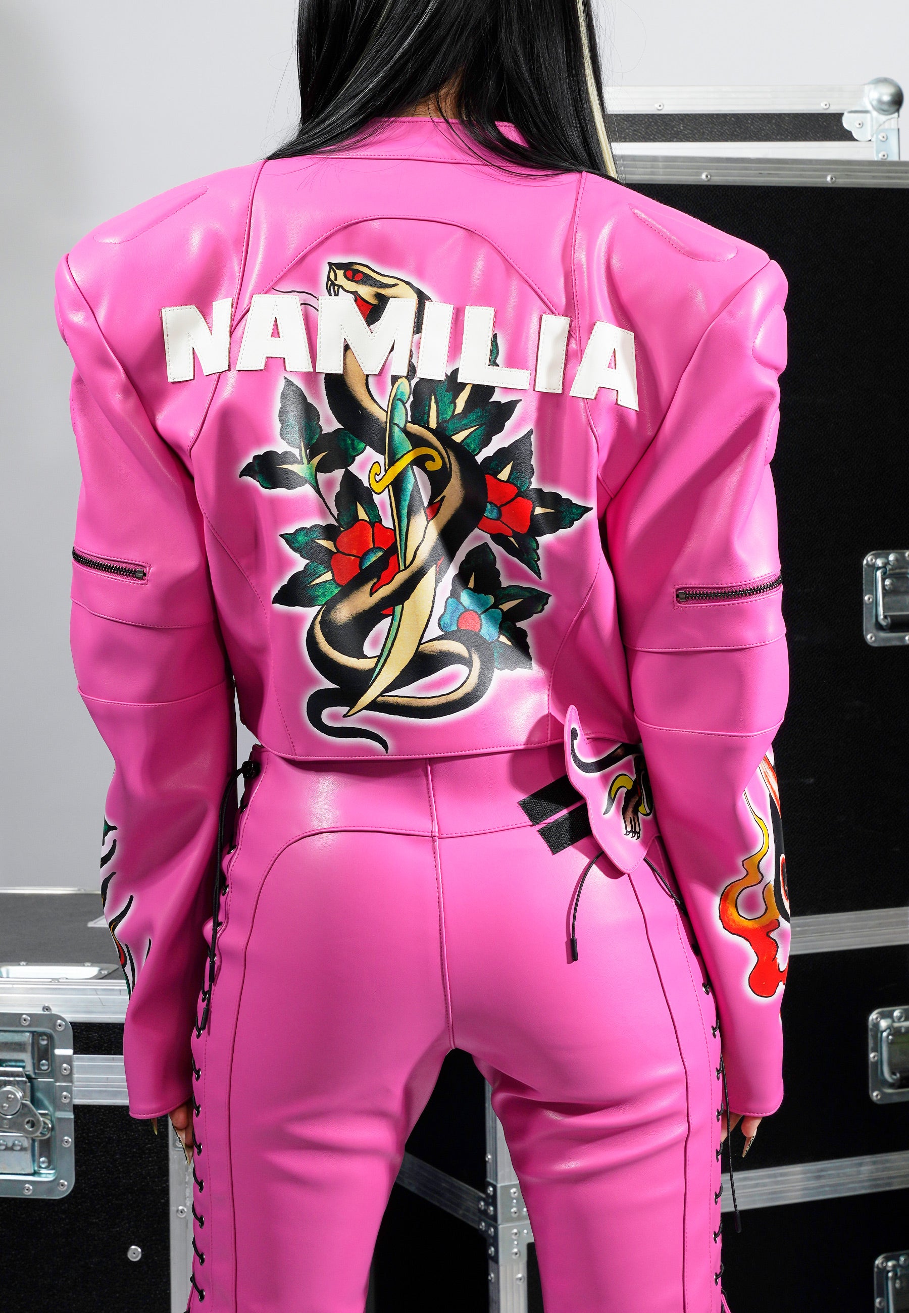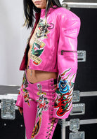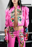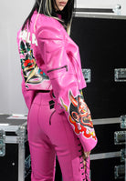 Black Rose Moto Jacket - Pink