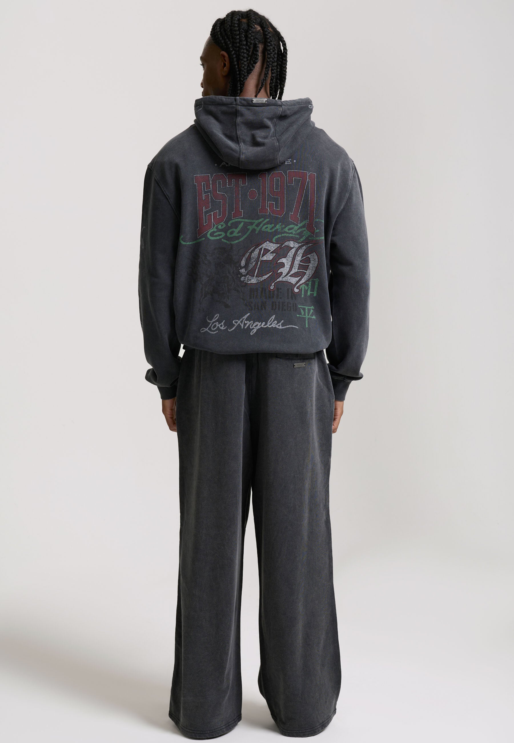 Mens 1971 Graphic Relaxed Washed Joggers - Black