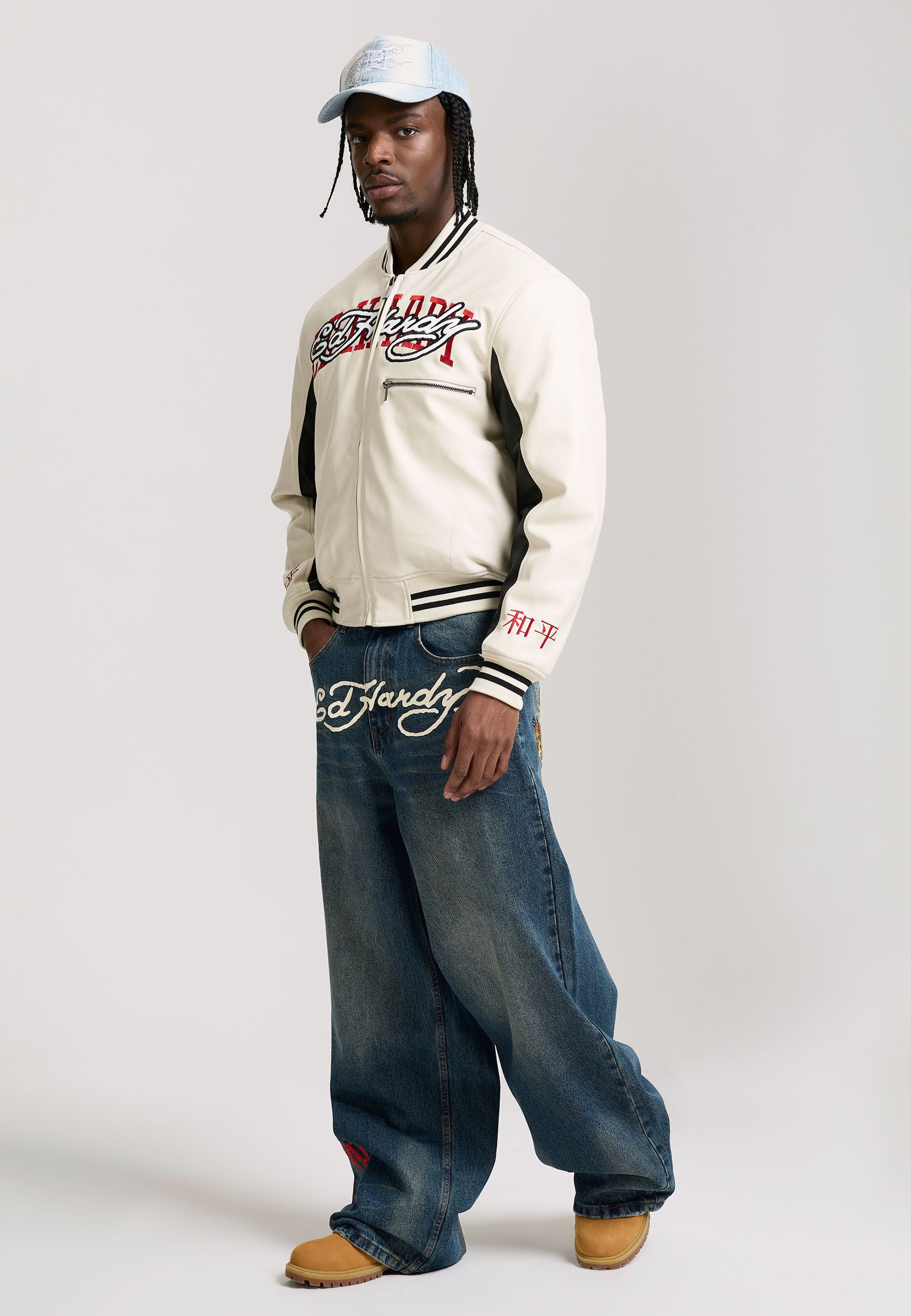Mens 1971 Panther Pu Varsity Bomber - Ecru / Black