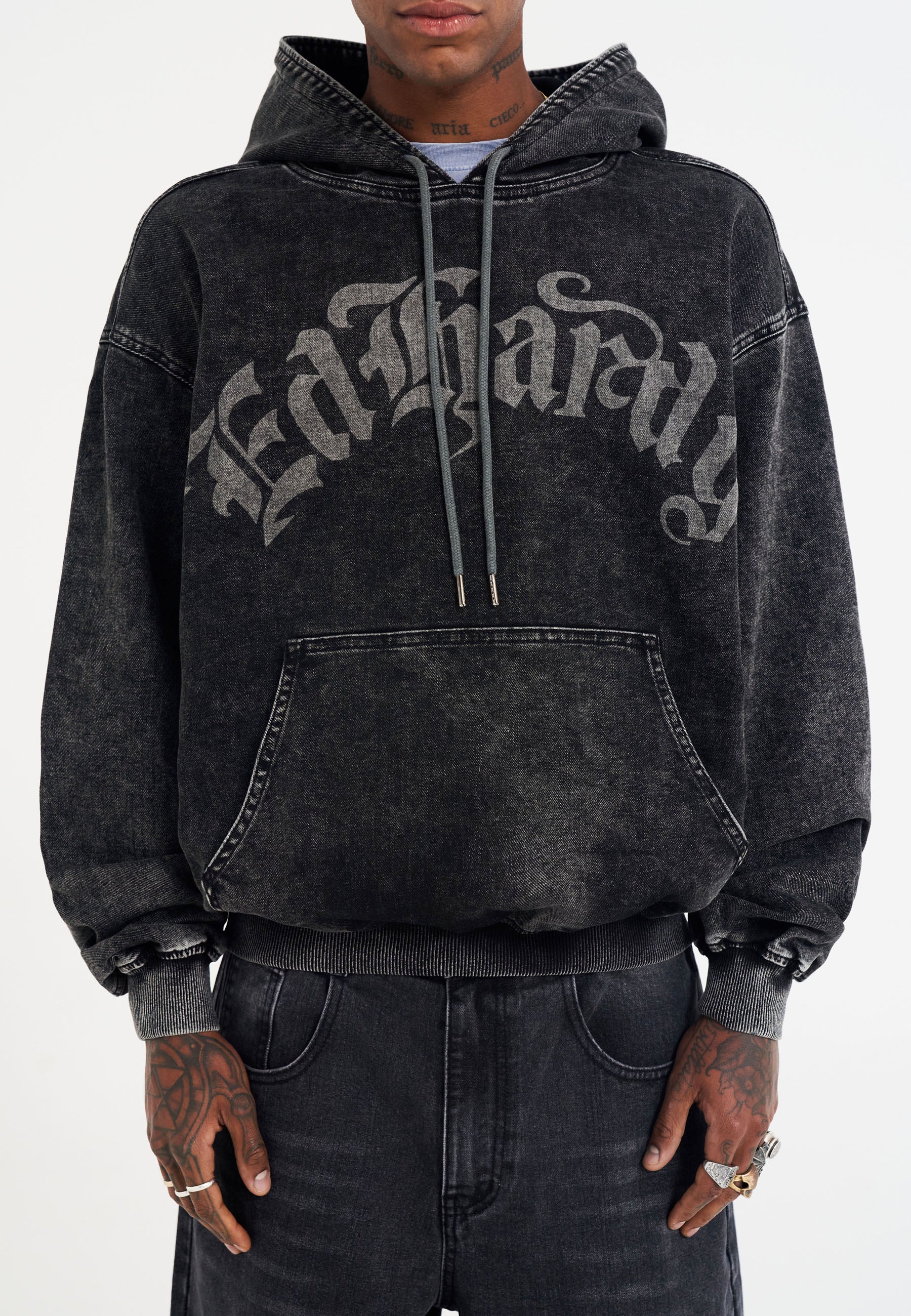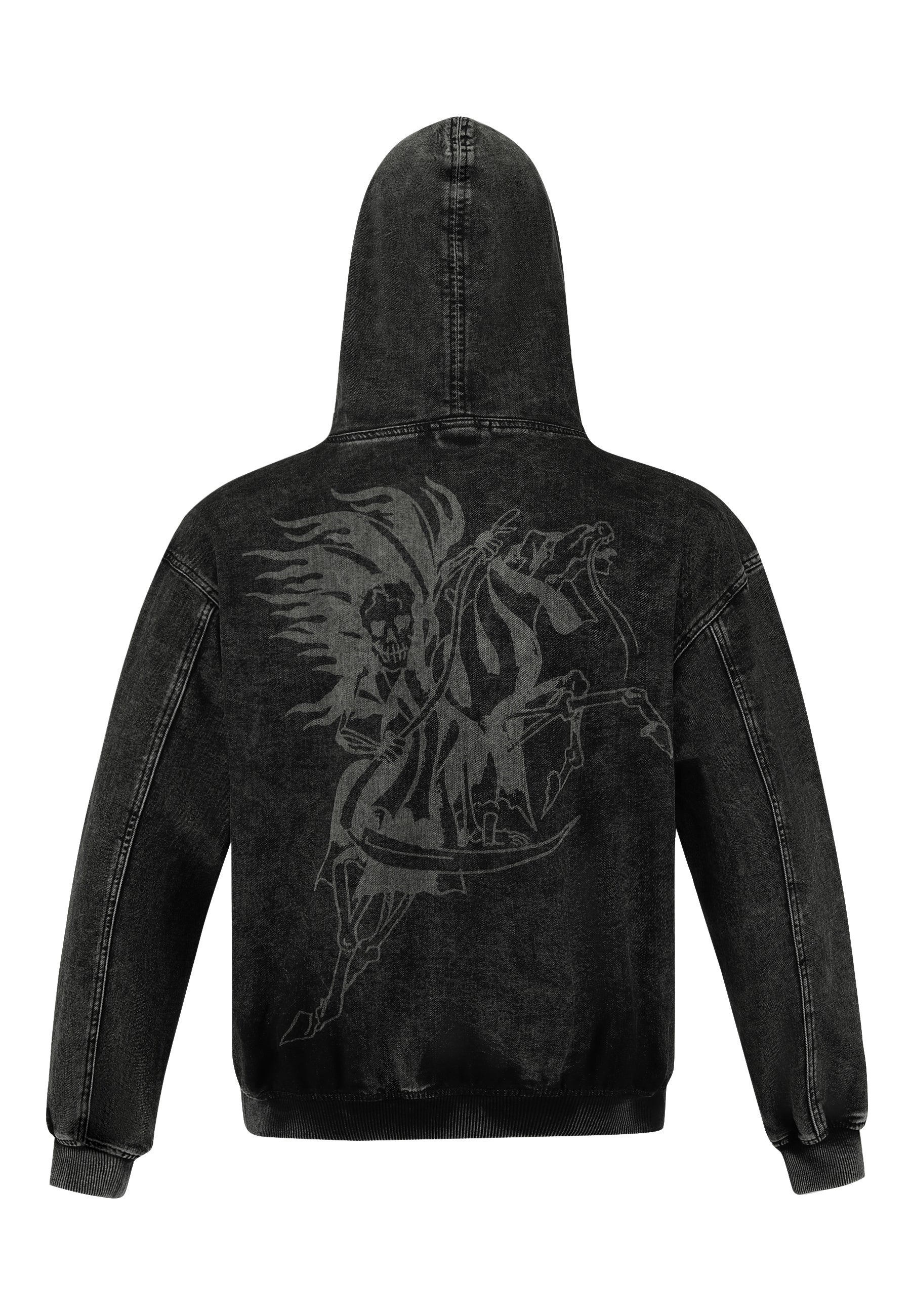 Introducing the Men's Death Rider Denim Pouch Hoodie, bold, oversized and heavily distressed for AW.