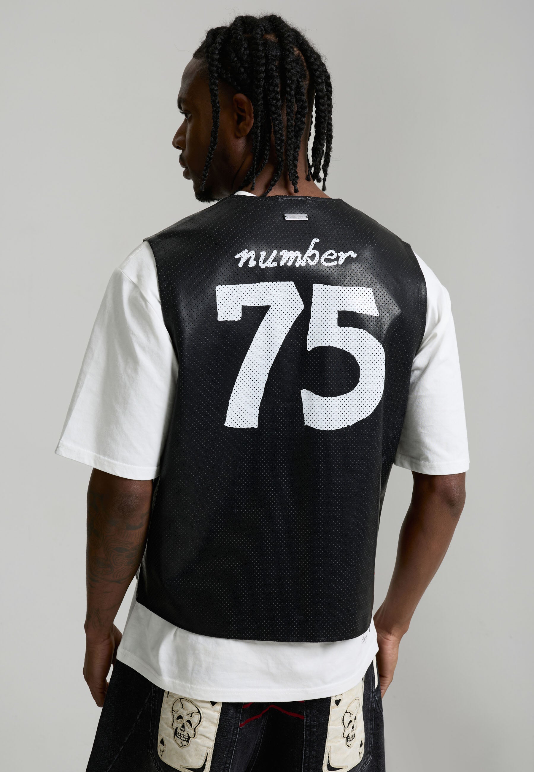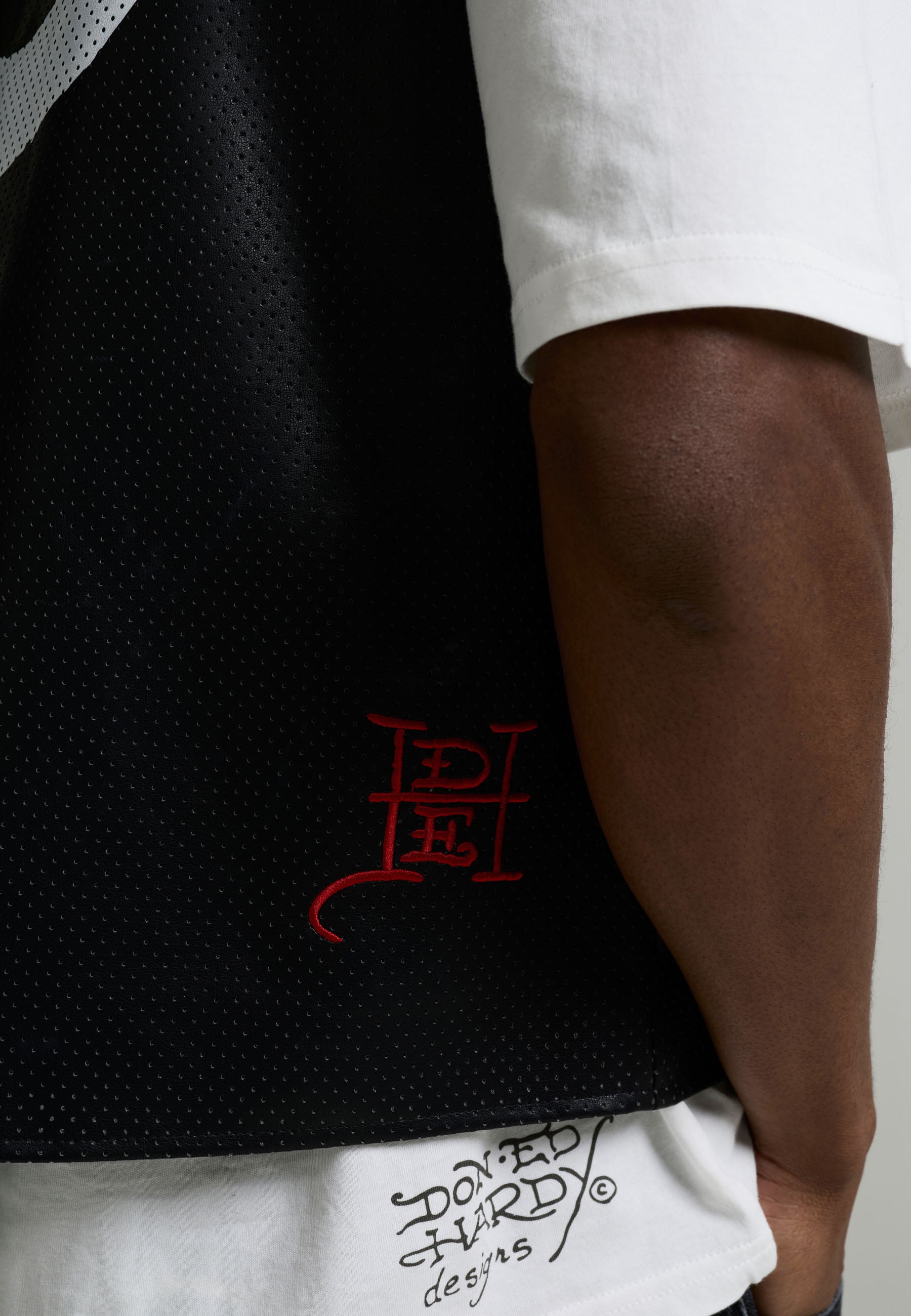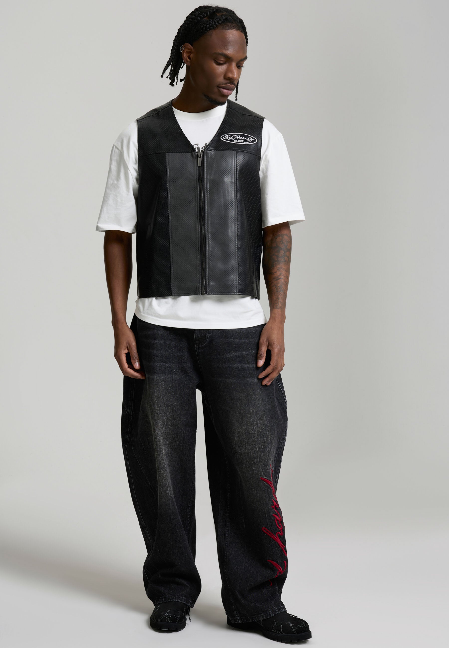 Mens Ed Hardy Pu Airtex Leather Vest - Black / Grey