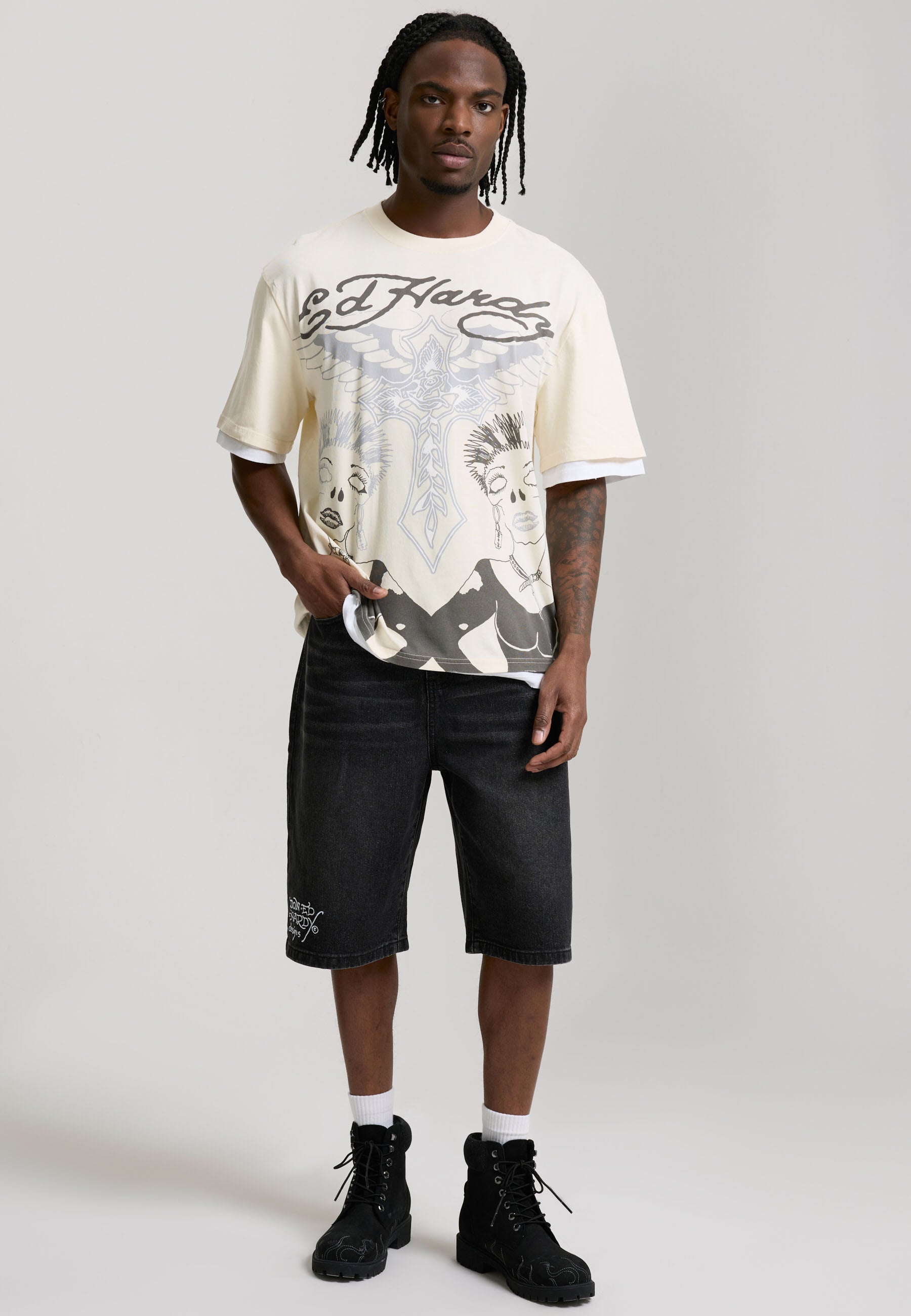 100% COTTON 180GSM DOUBLE LAYER DETAIL ENYME WASH RELAXED FIT SIGNTURE ED HARDY PUNK GRAPHIC