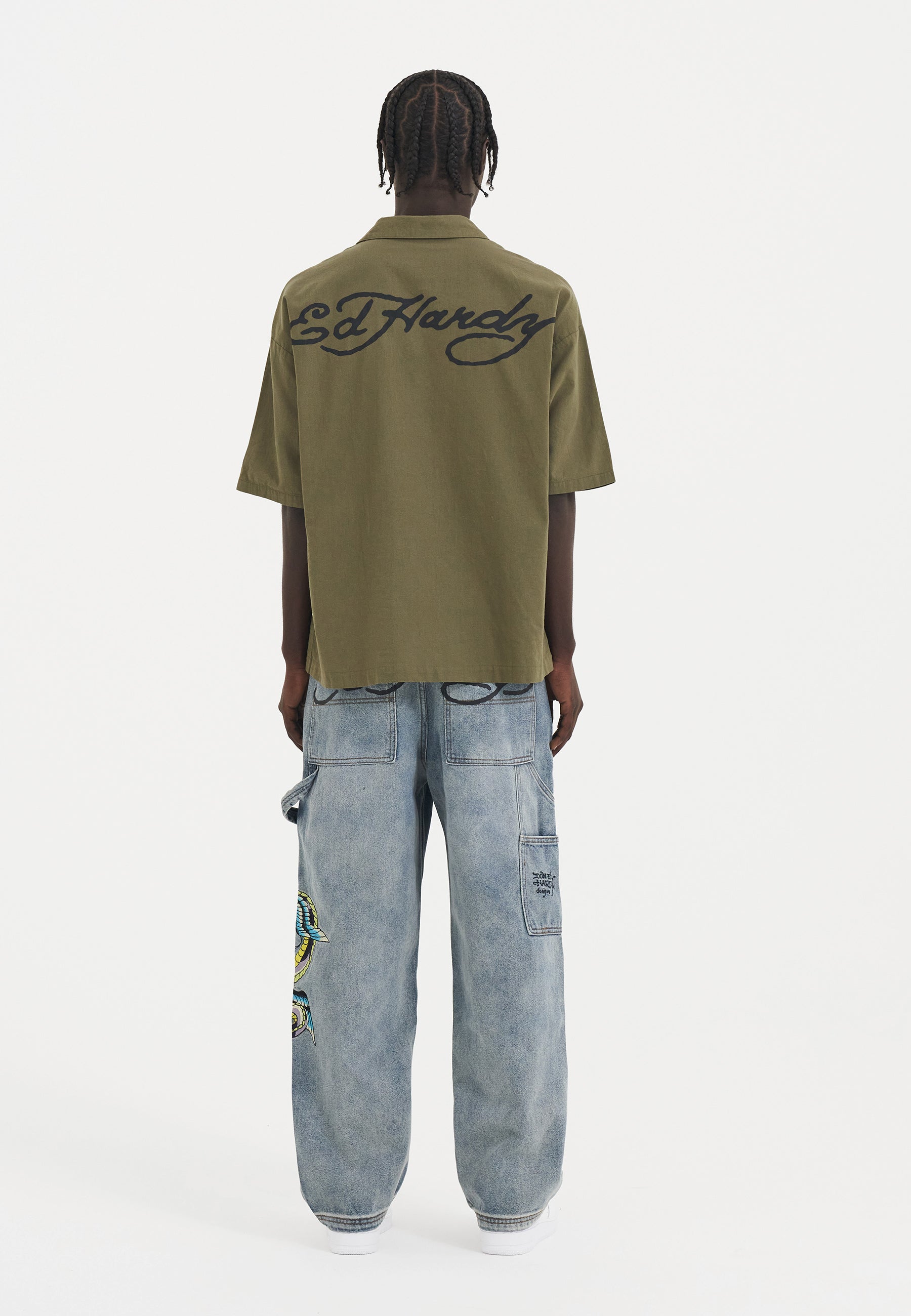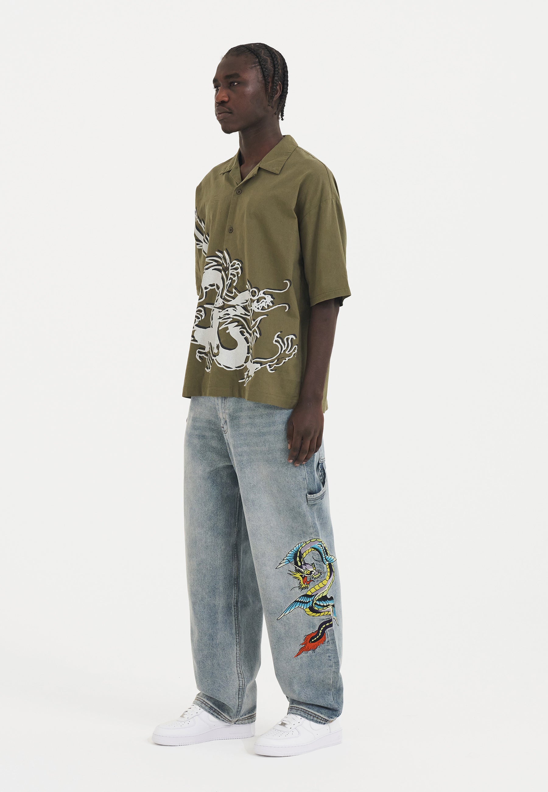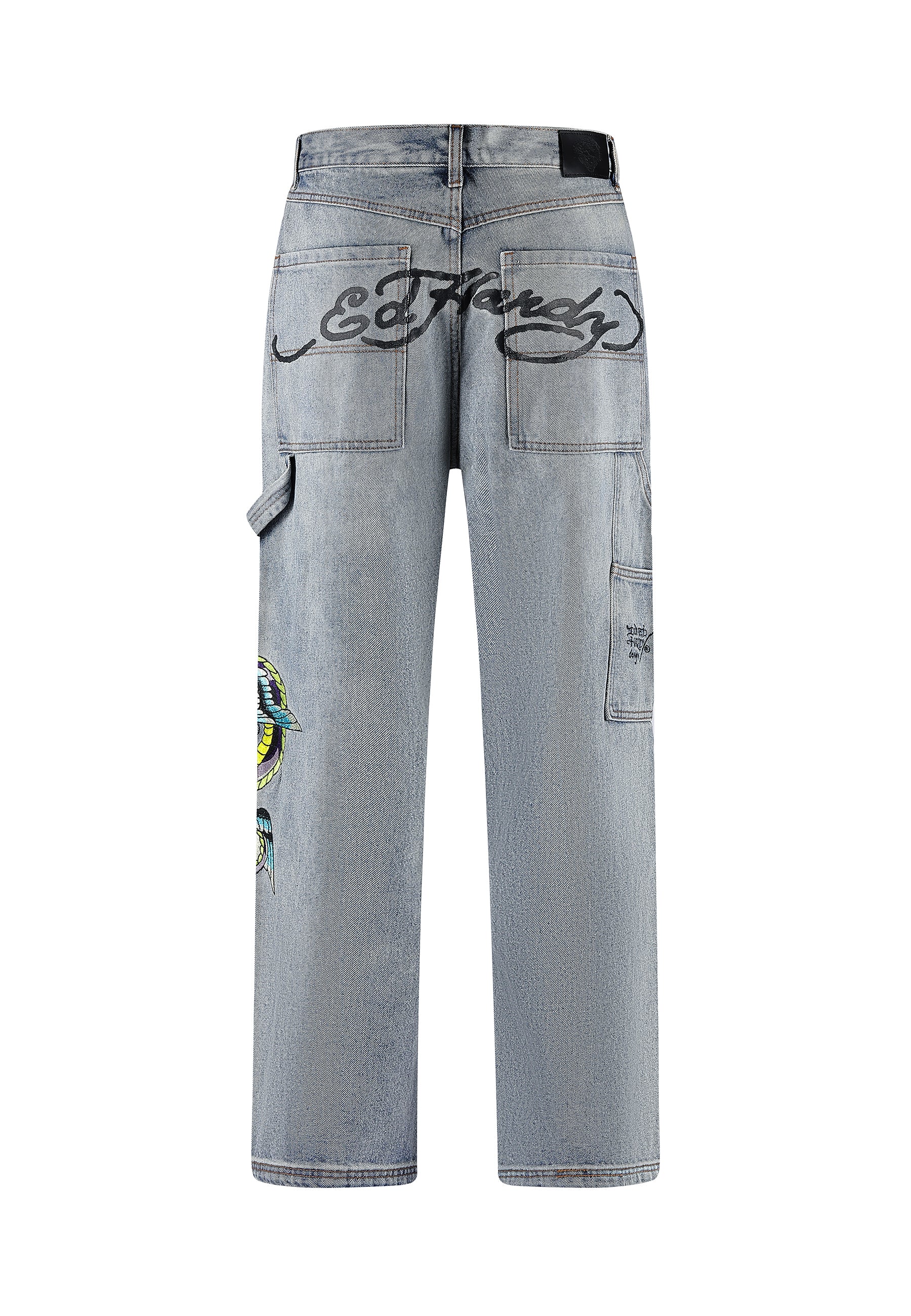 With a relaxed fit and our most popular bleach wash serving as the canvas, these jeans showcase Ed's iconic designs through vibrant full-colour embroidered patches.