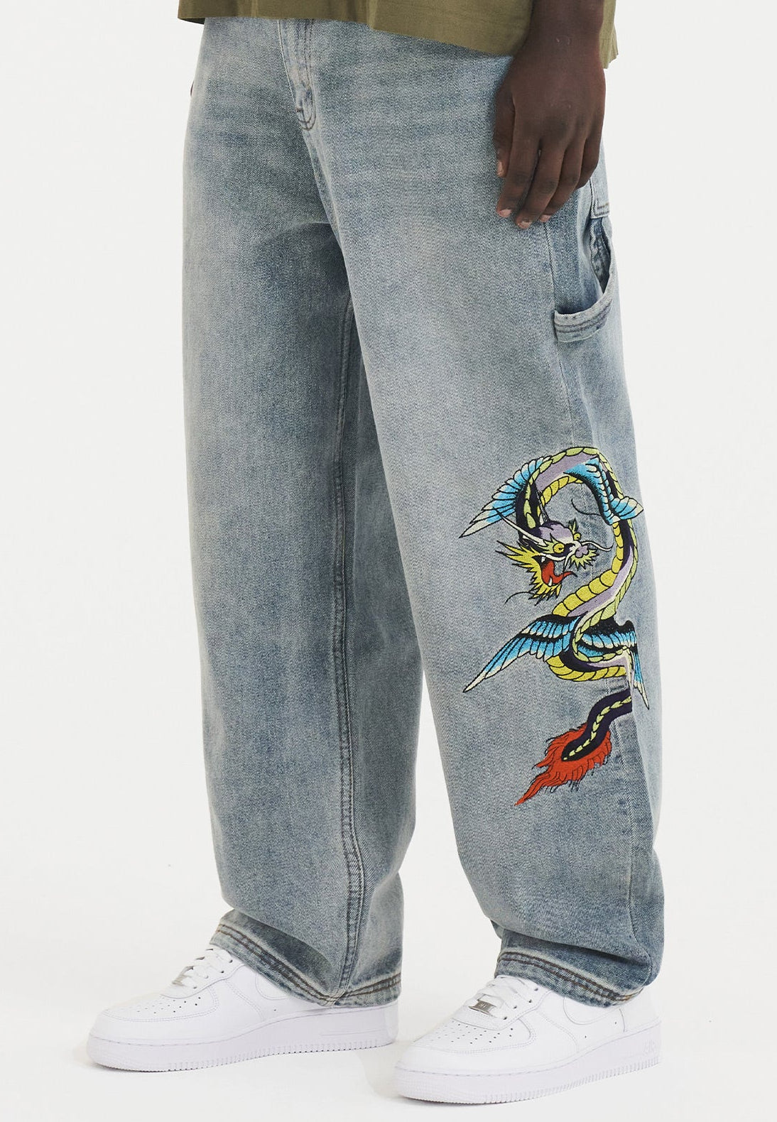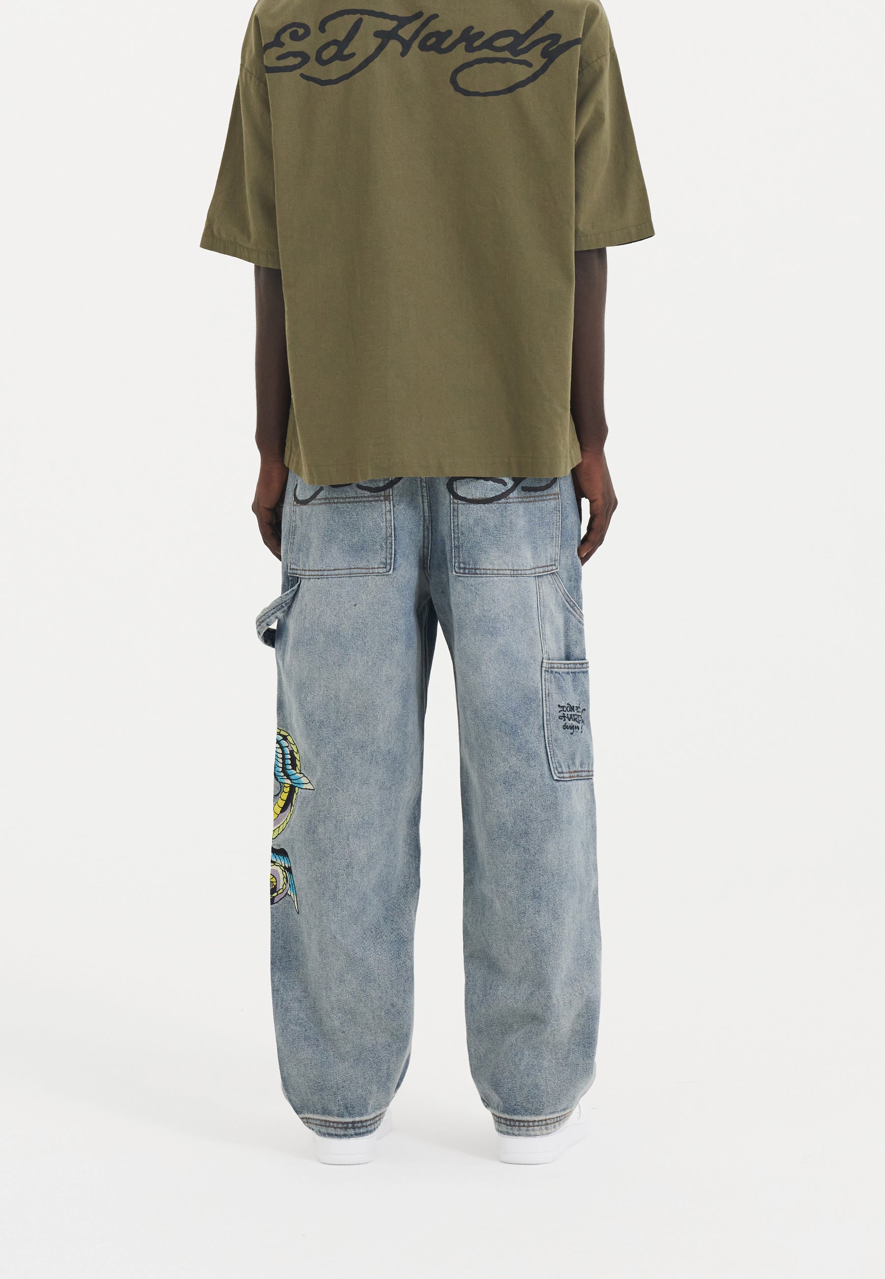 Mens Flying Dragon Carpenter Denim Trousers Jeans - Blue