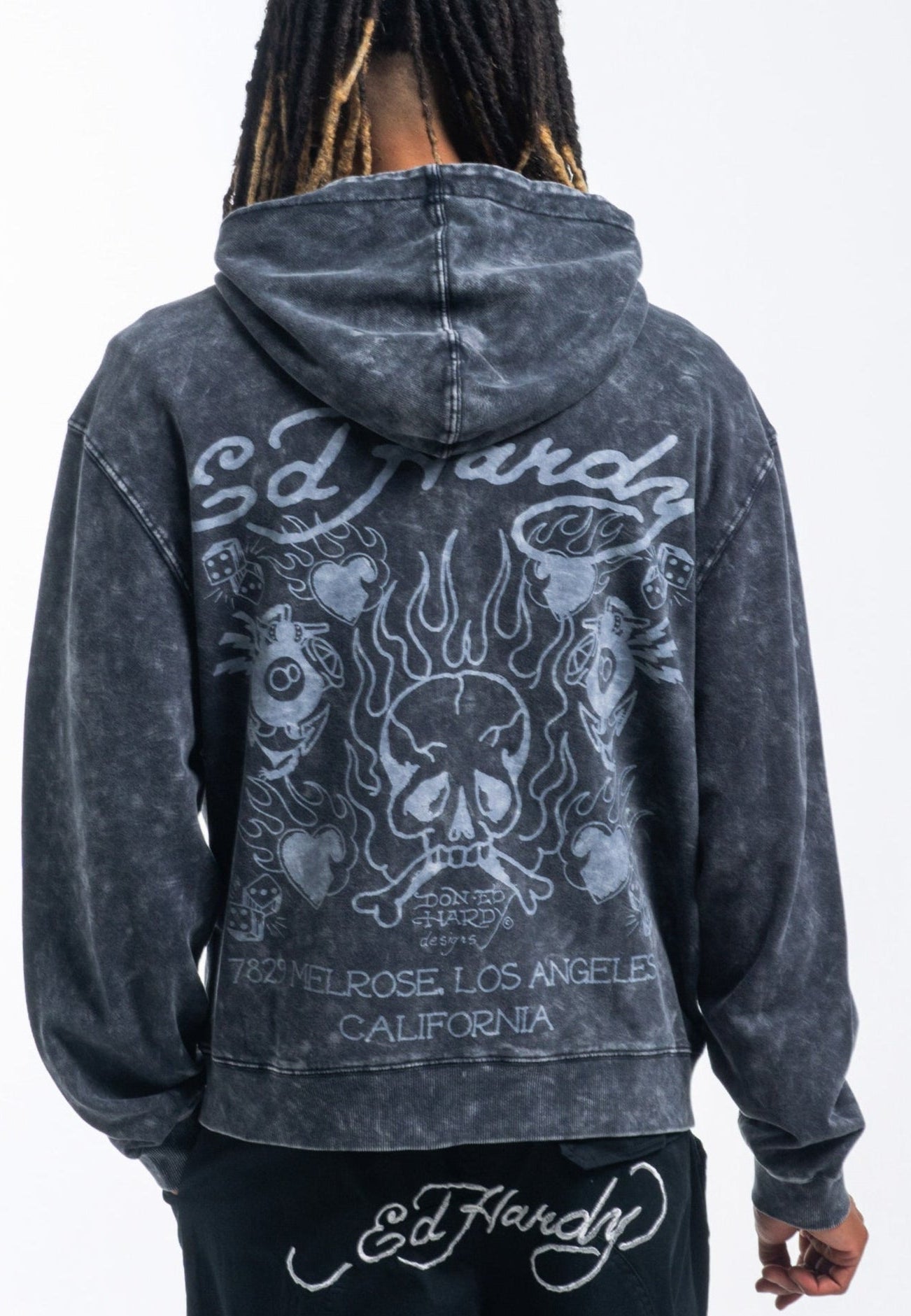 Emerging from Ed's artistic vault, the Acid Flaming Skull Hoodie pays homage to the gritty underground world of New York tattoo studios.
