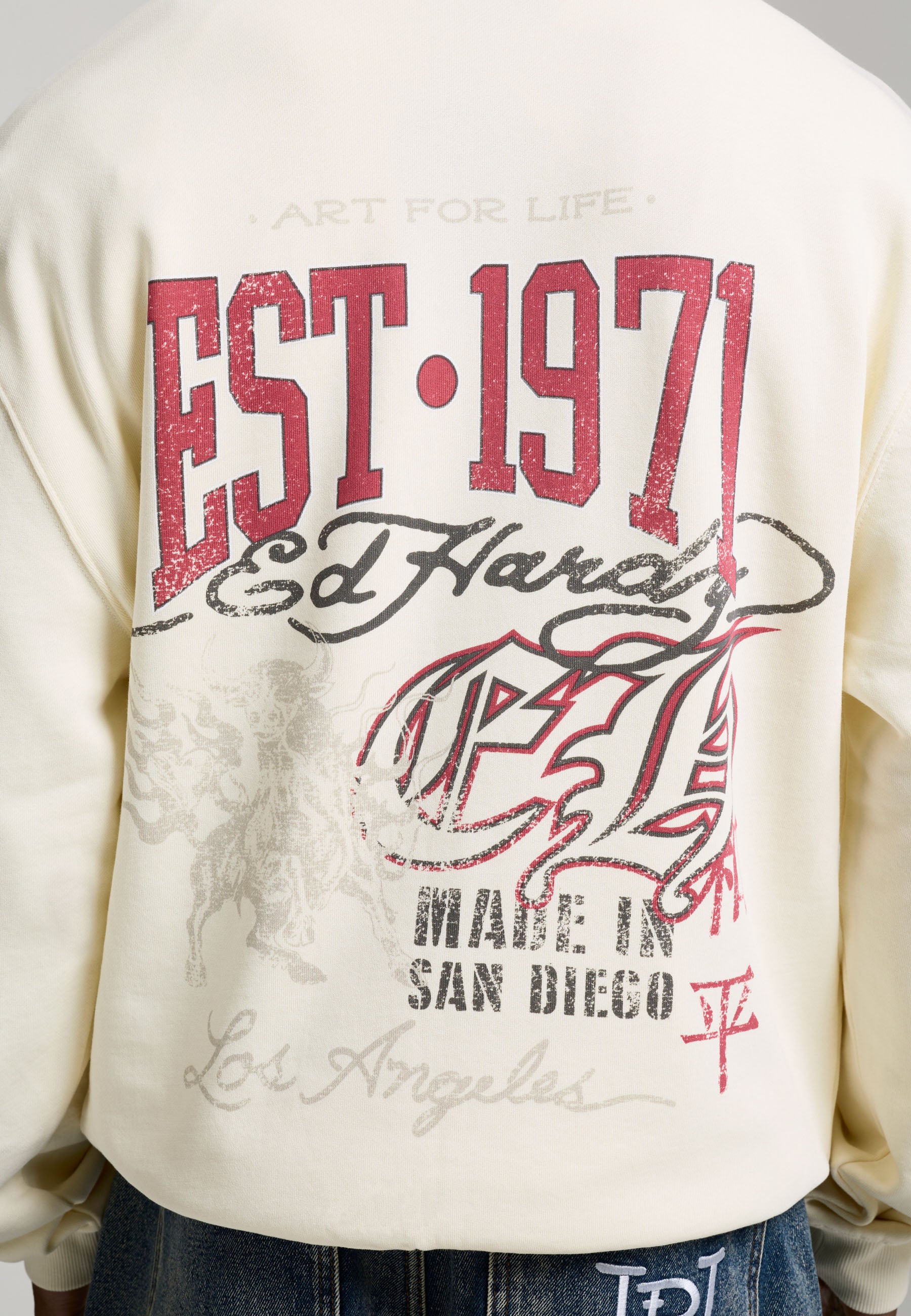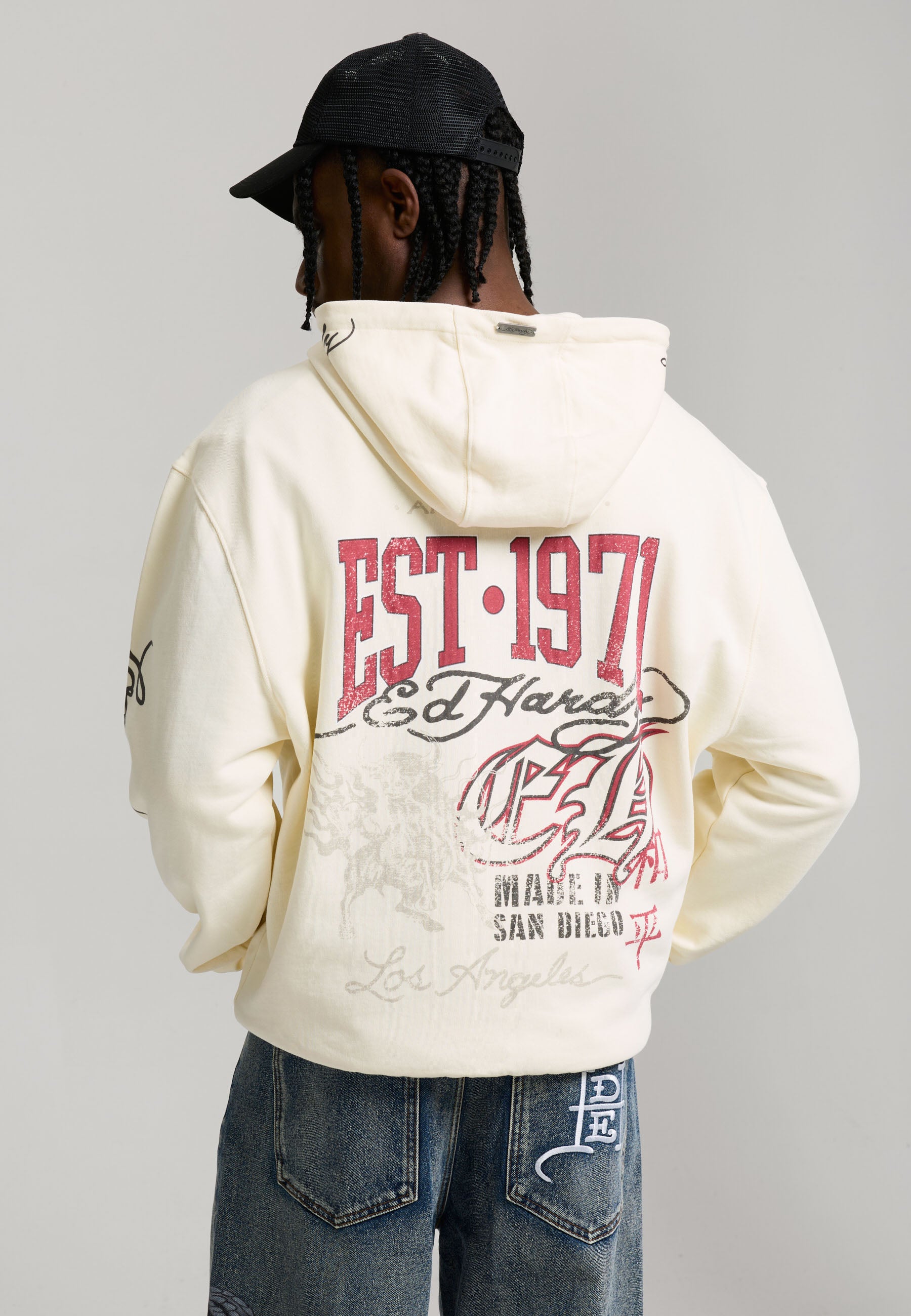 Mens Relaxed Art For Life Tattoo Zip Thru Hoodie in Ecru