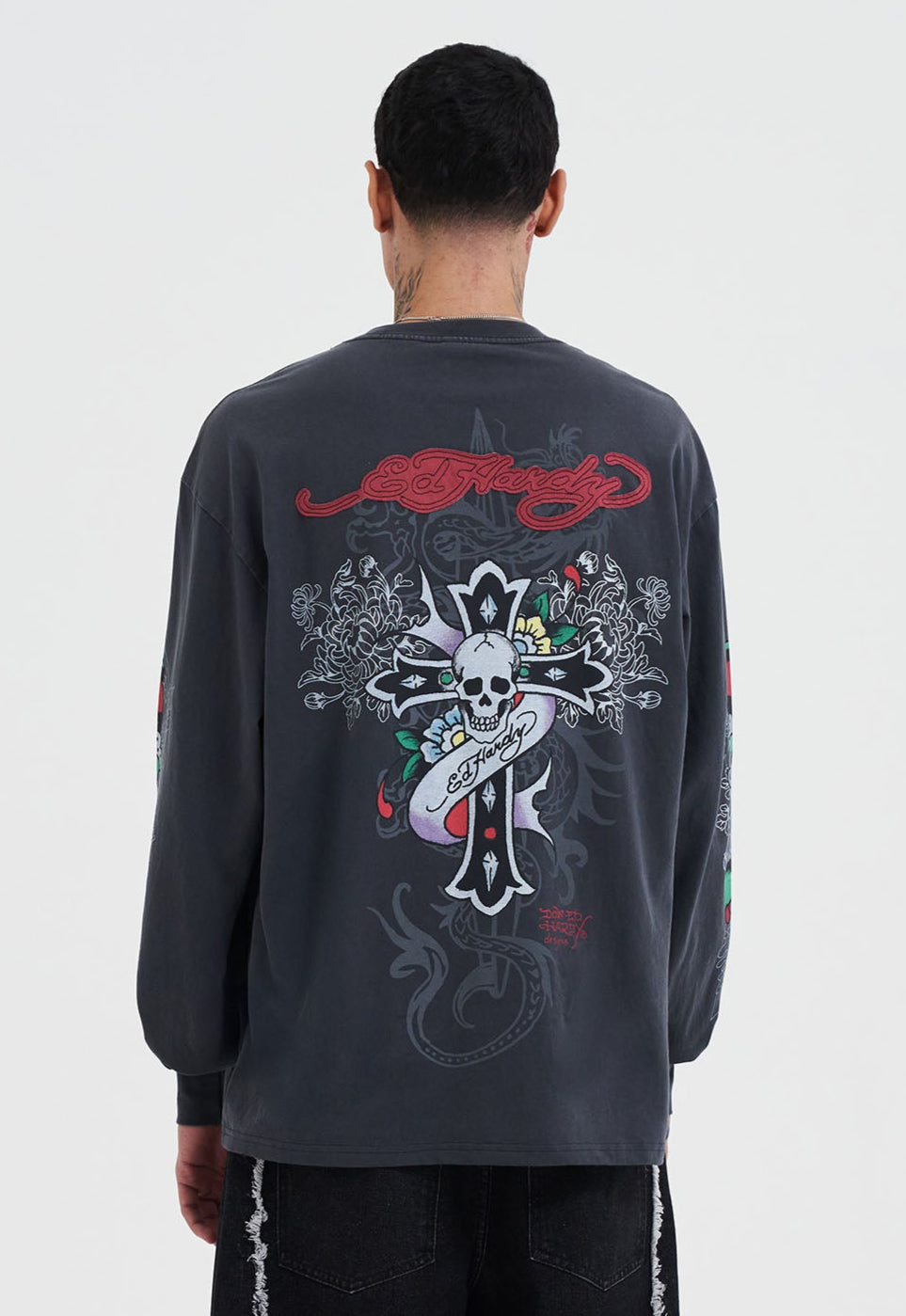 SKULL CROSS ABSTRACT LONG SLEEVE T-SHIRT