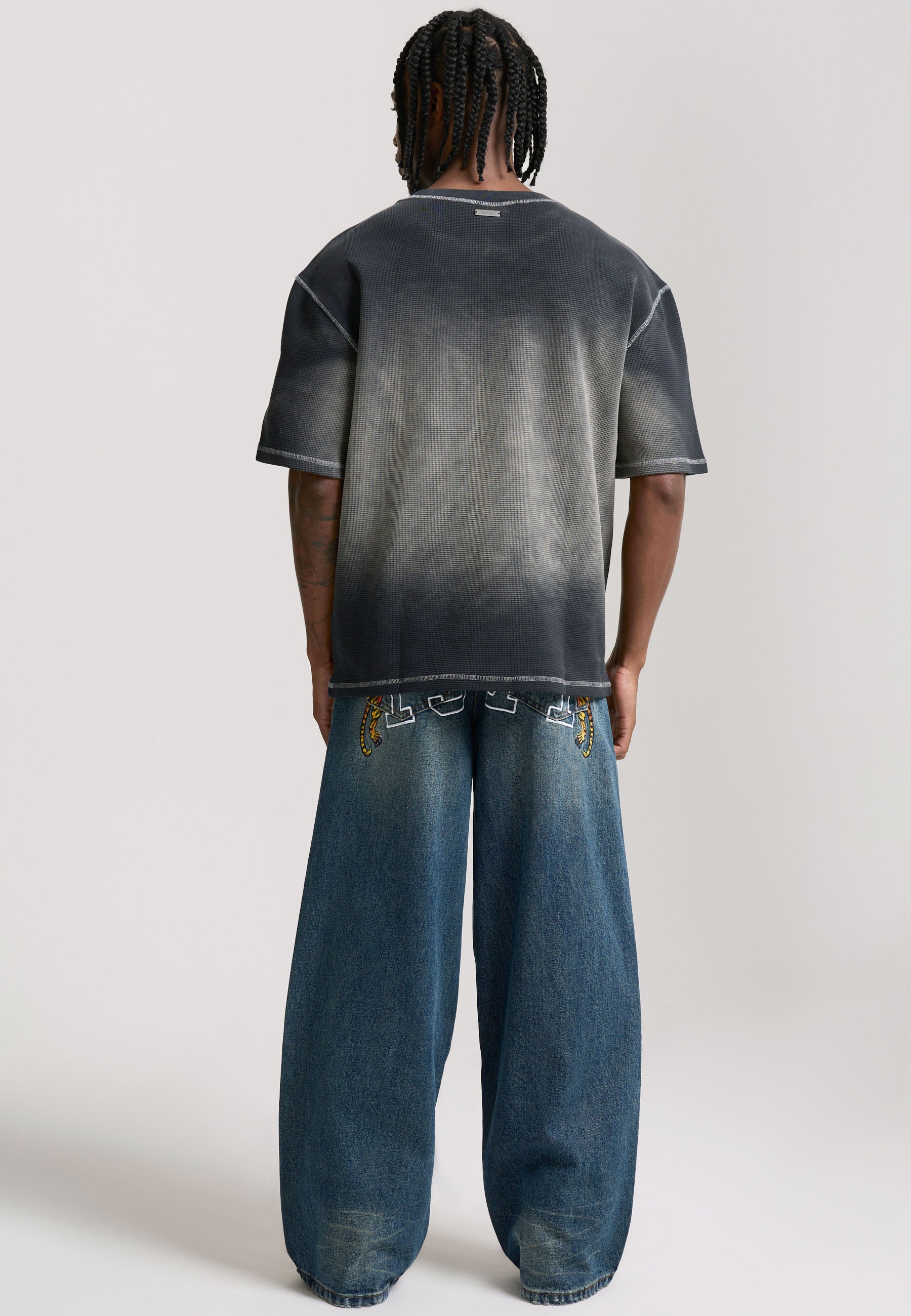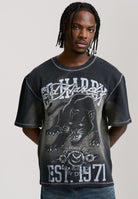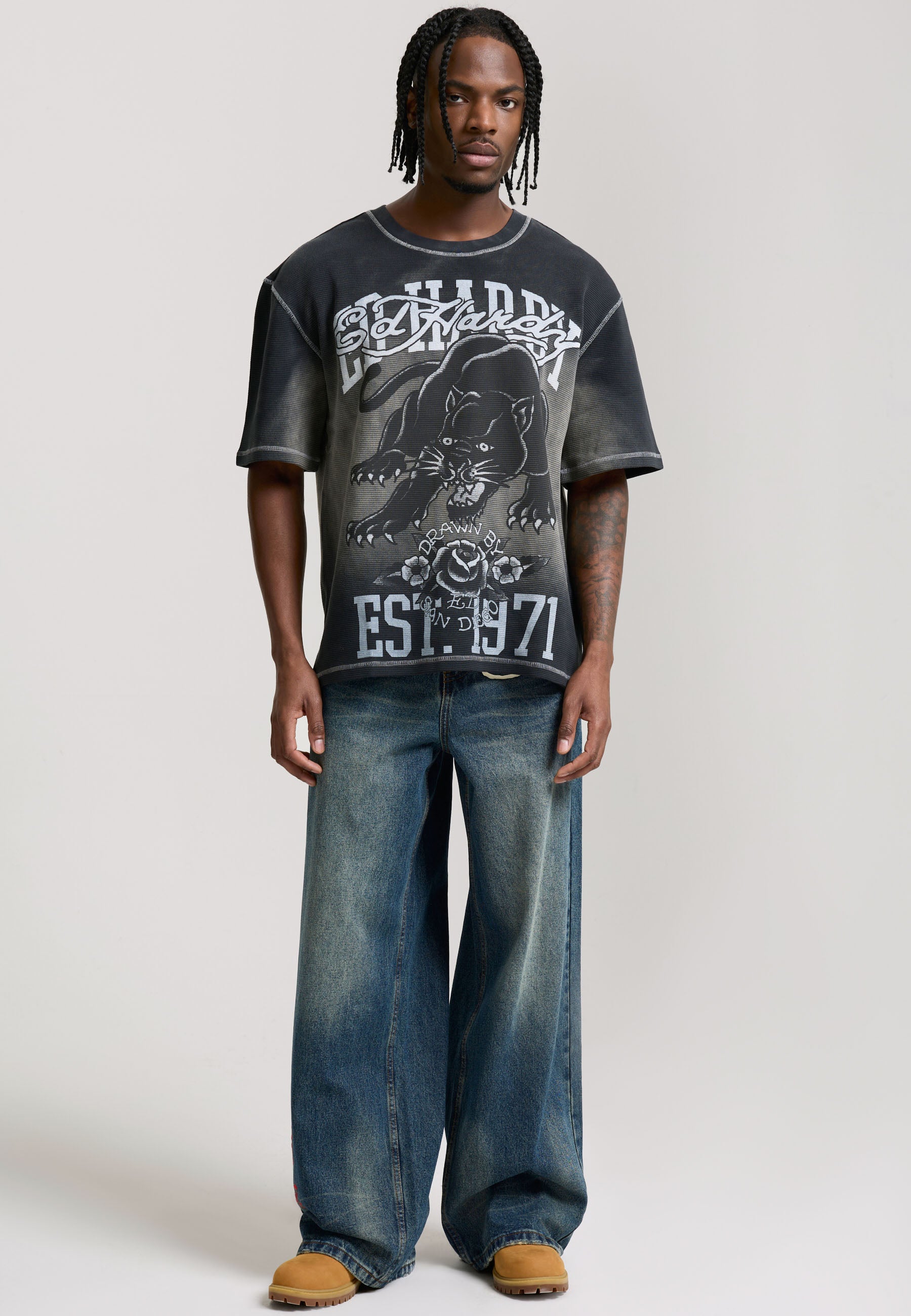 Mens Washed Waffle Panther Graphic Relaxed T-Shirt in Black