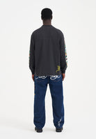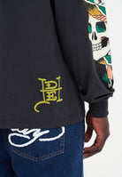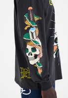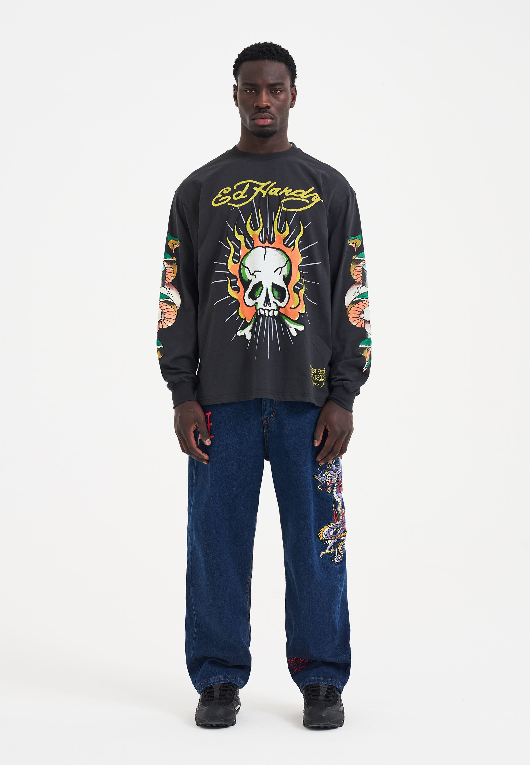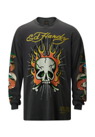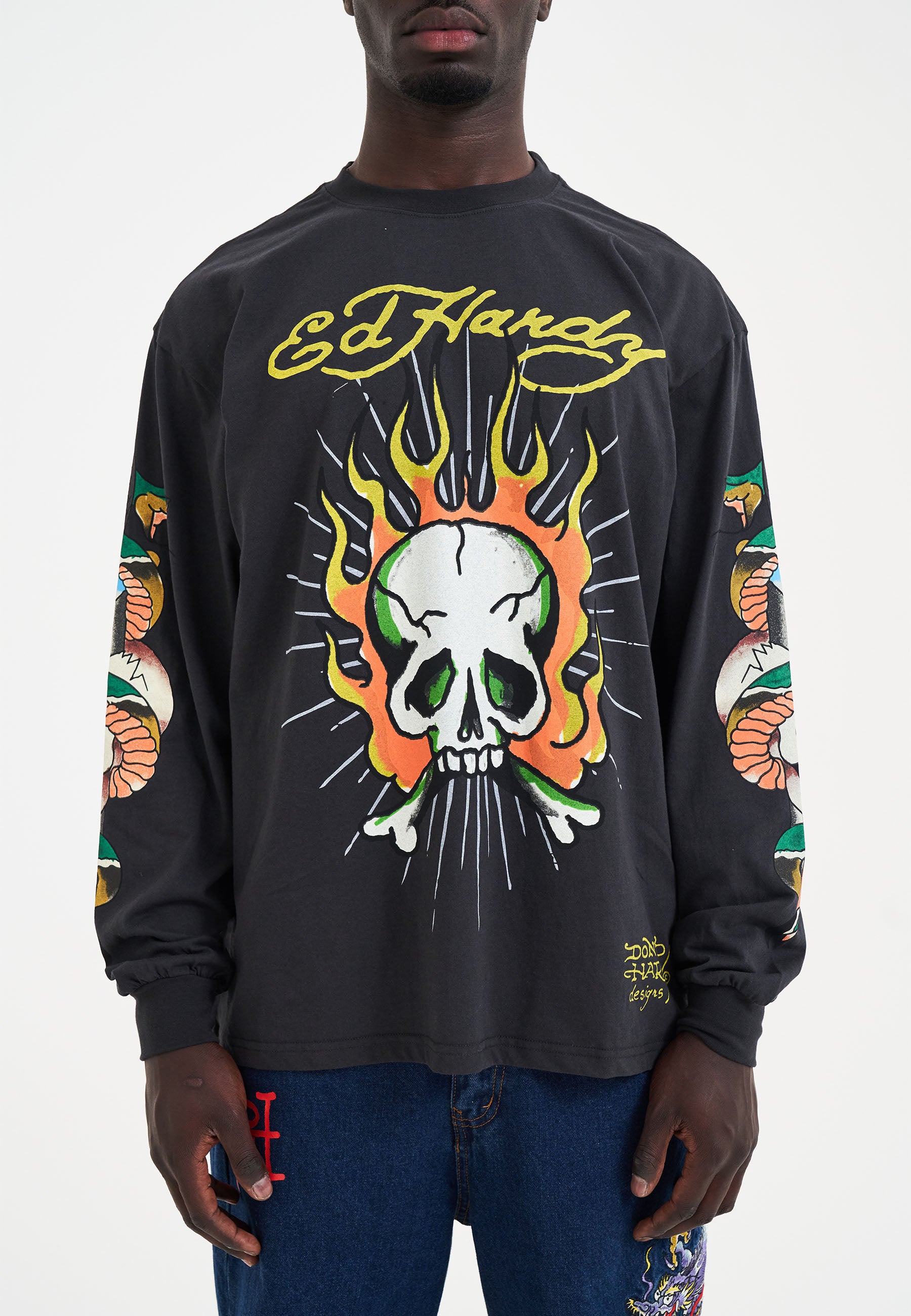 Mens Skull-Flame Long Sleeve T-Shirt - Charcoal