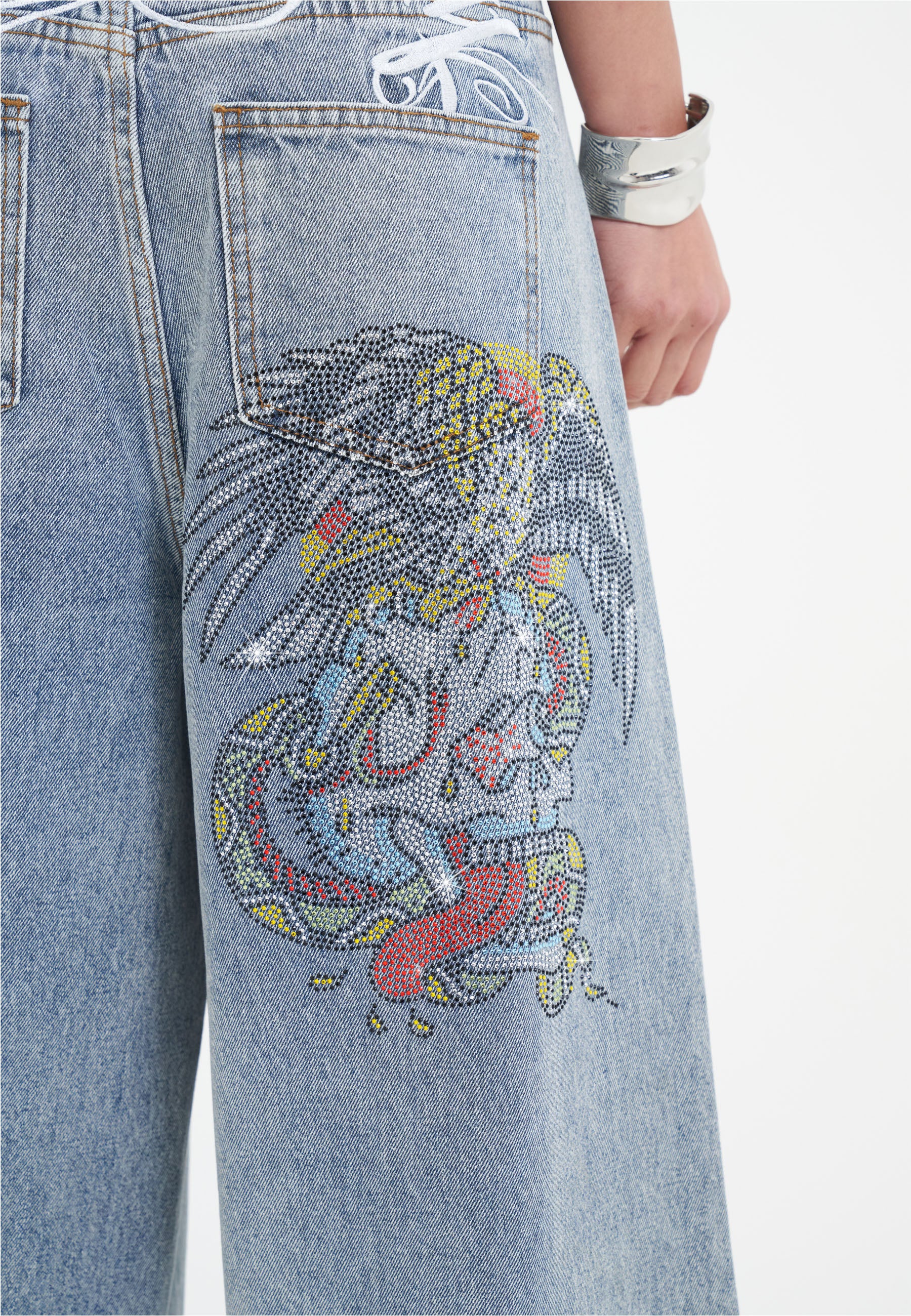 Enhanced by layered artworks in full-colour embroidery patches and diamante detailing, Ed says, 'Wear your art'.
