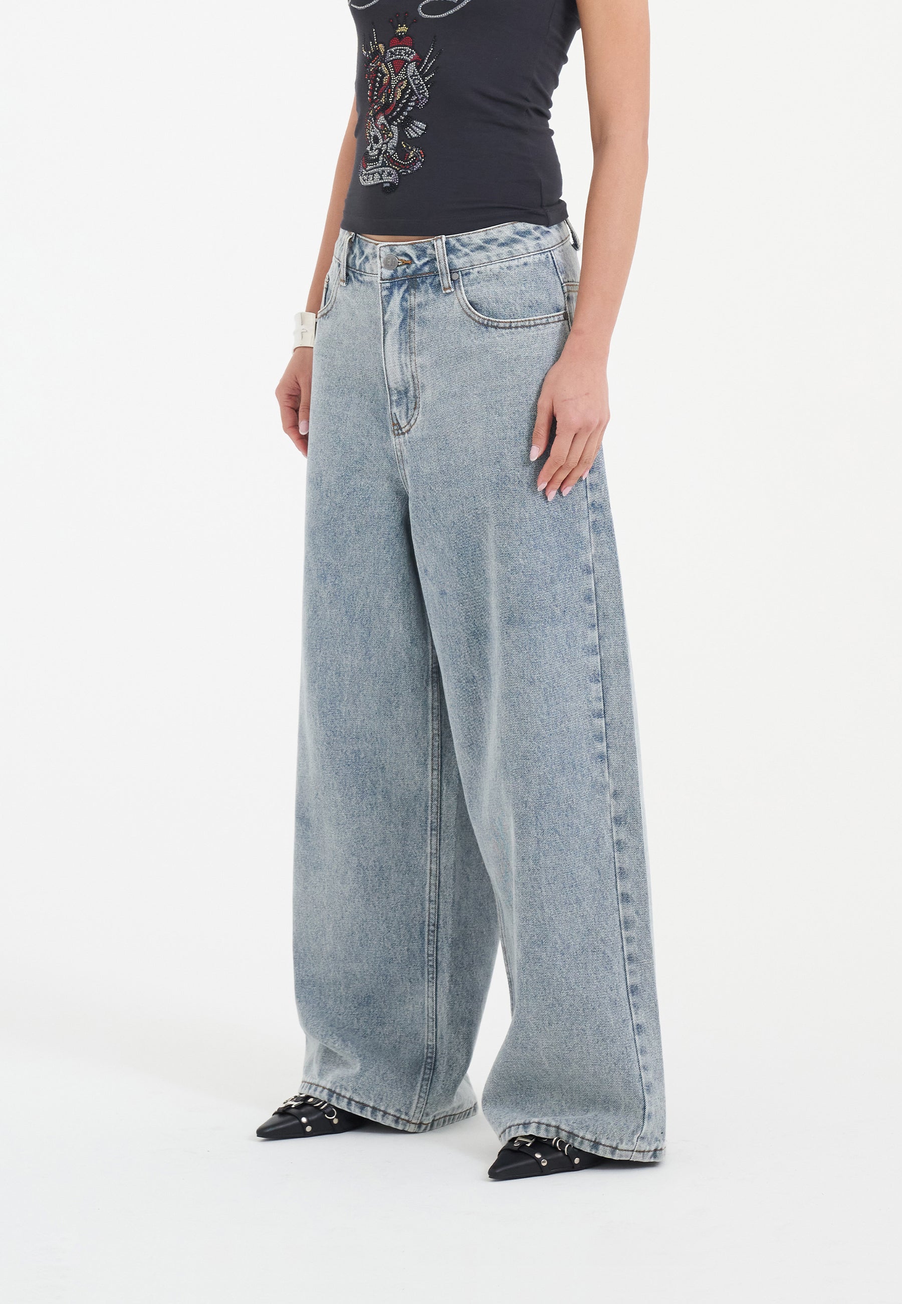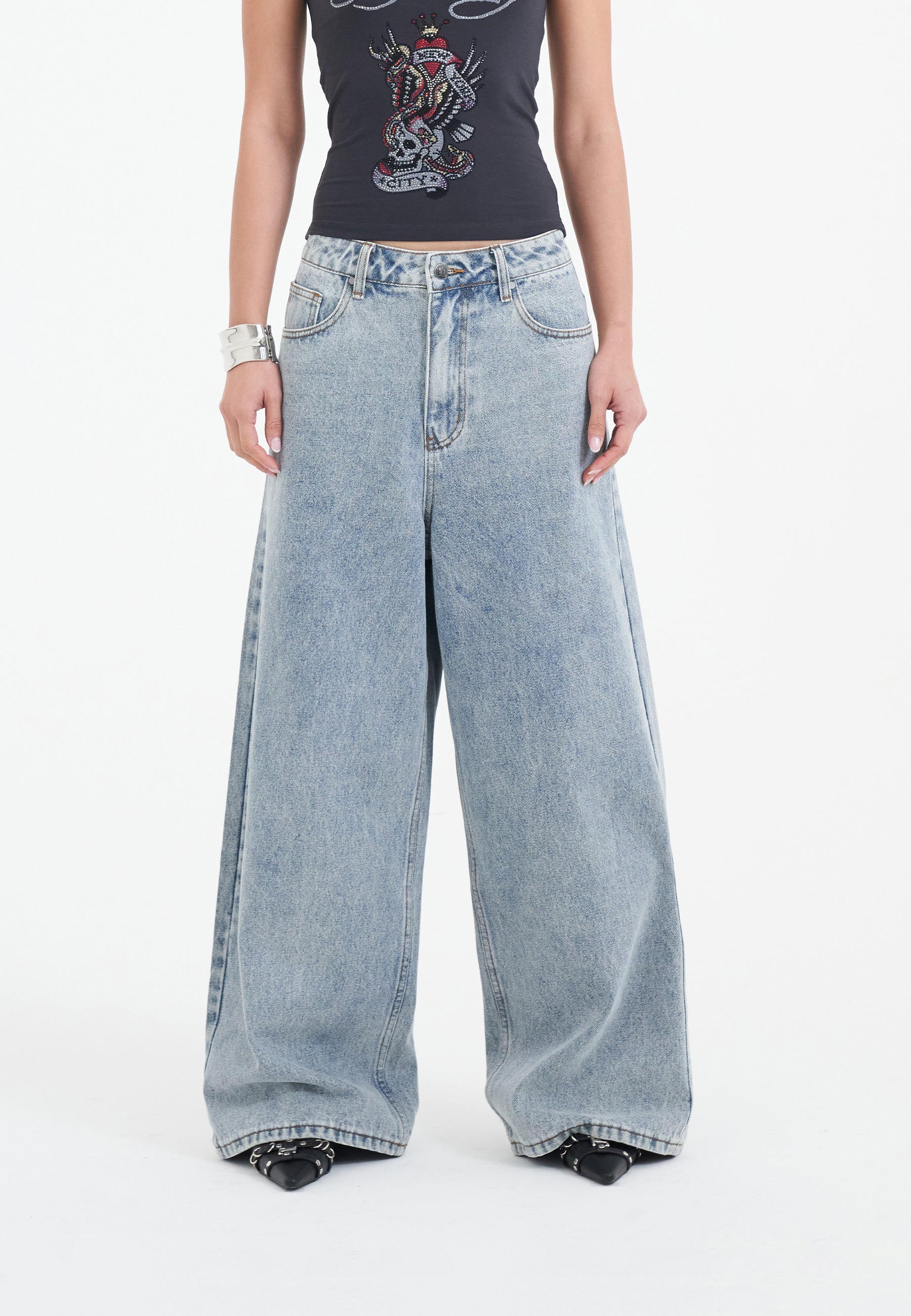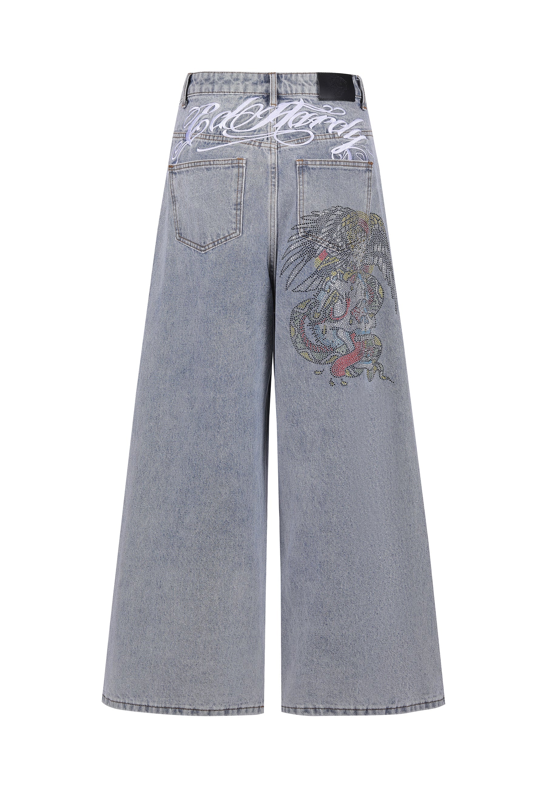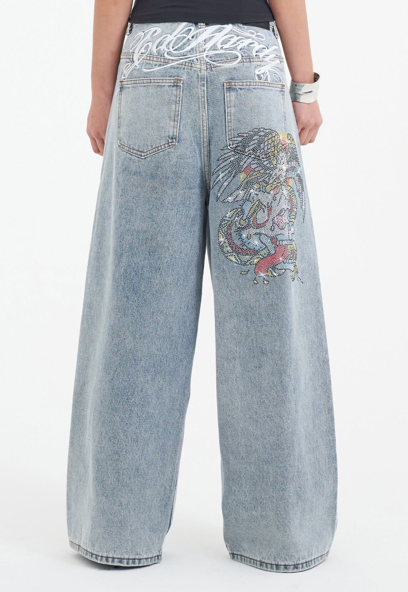 The scroll-stopper. The Eagle Skull Diamante Xtra Denim Jeans are a self-explanatory hero piece from the new SS collection.