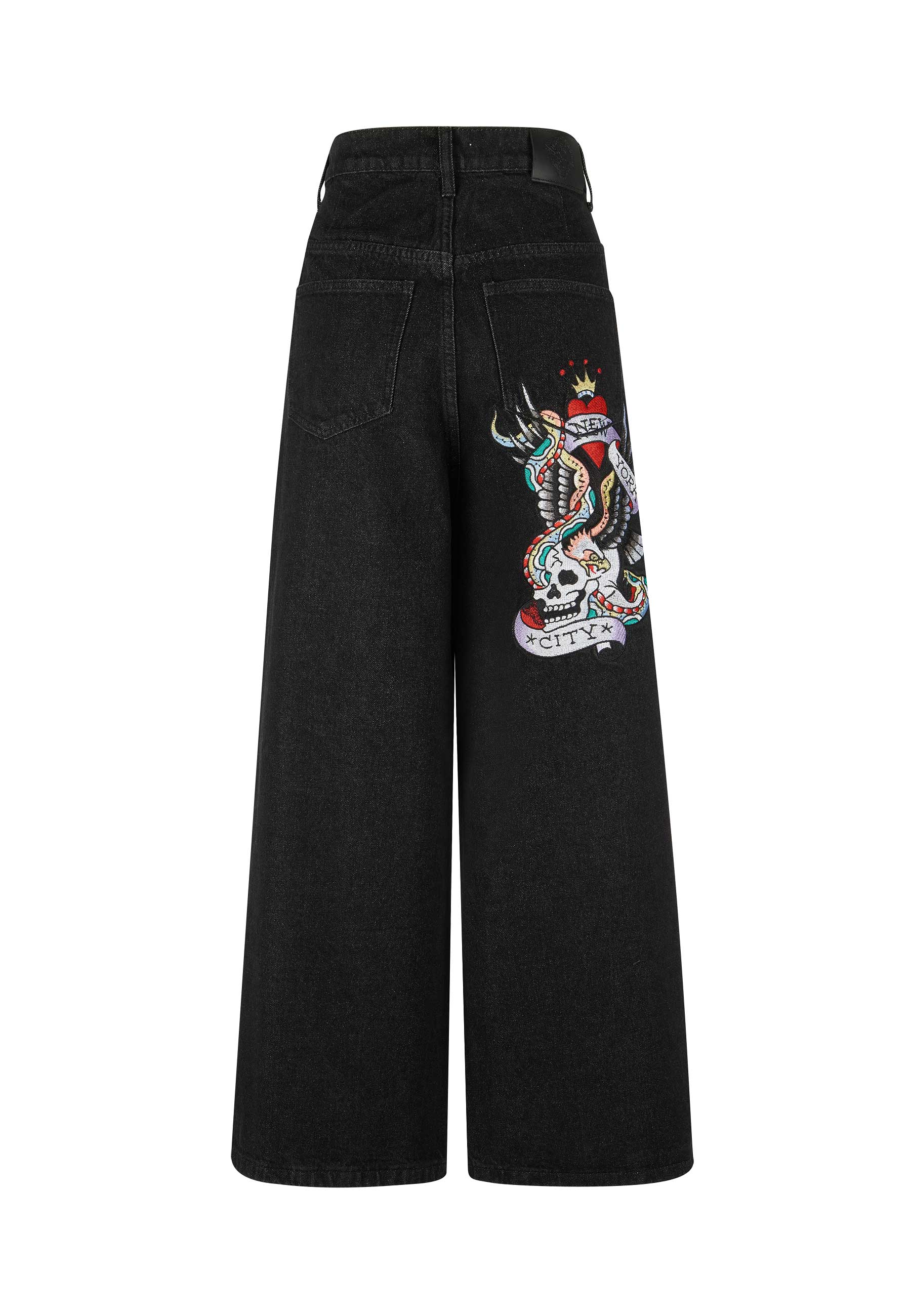 Womens Ny City Xtra Oversized Denim Trousers Jeans - Black