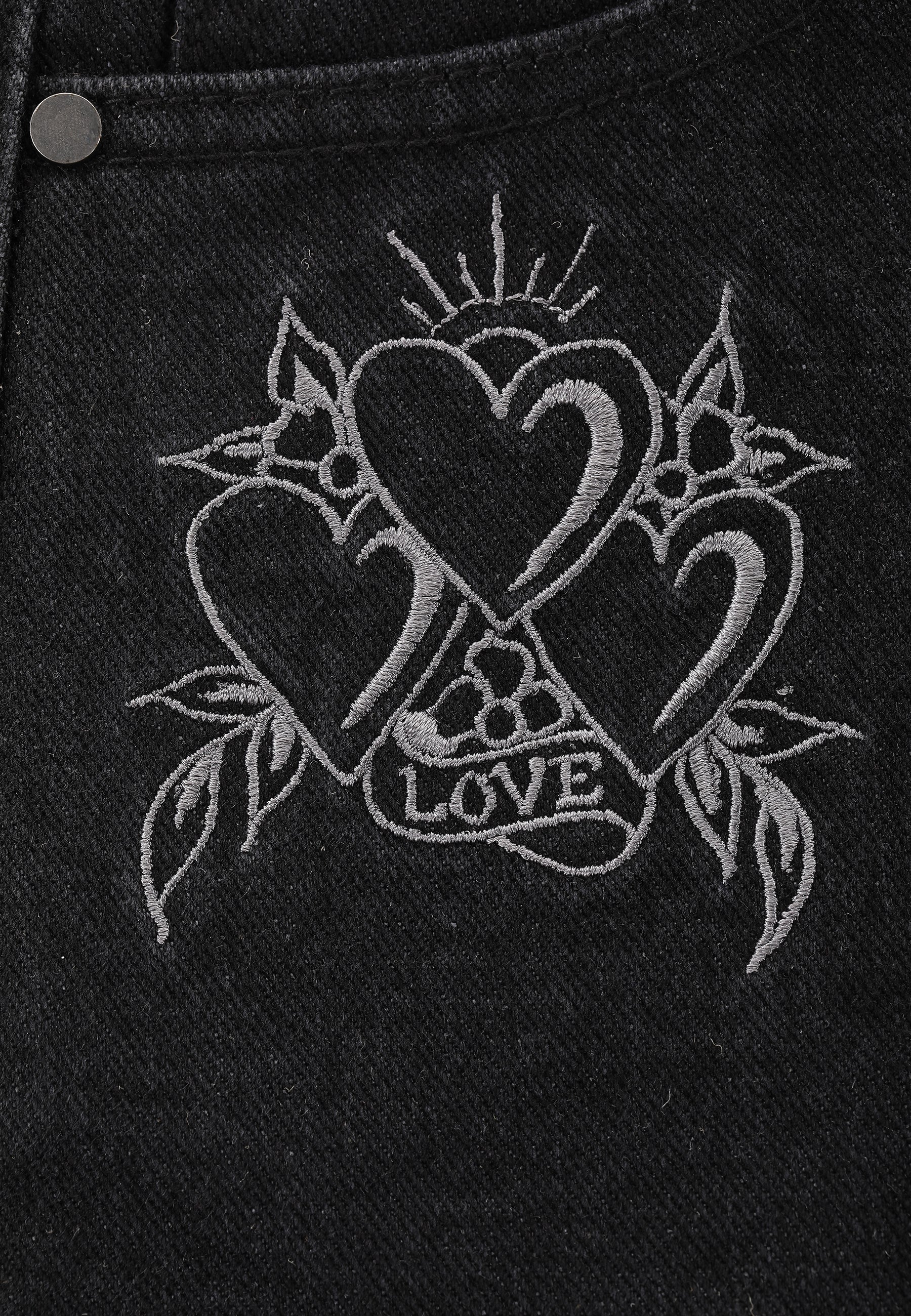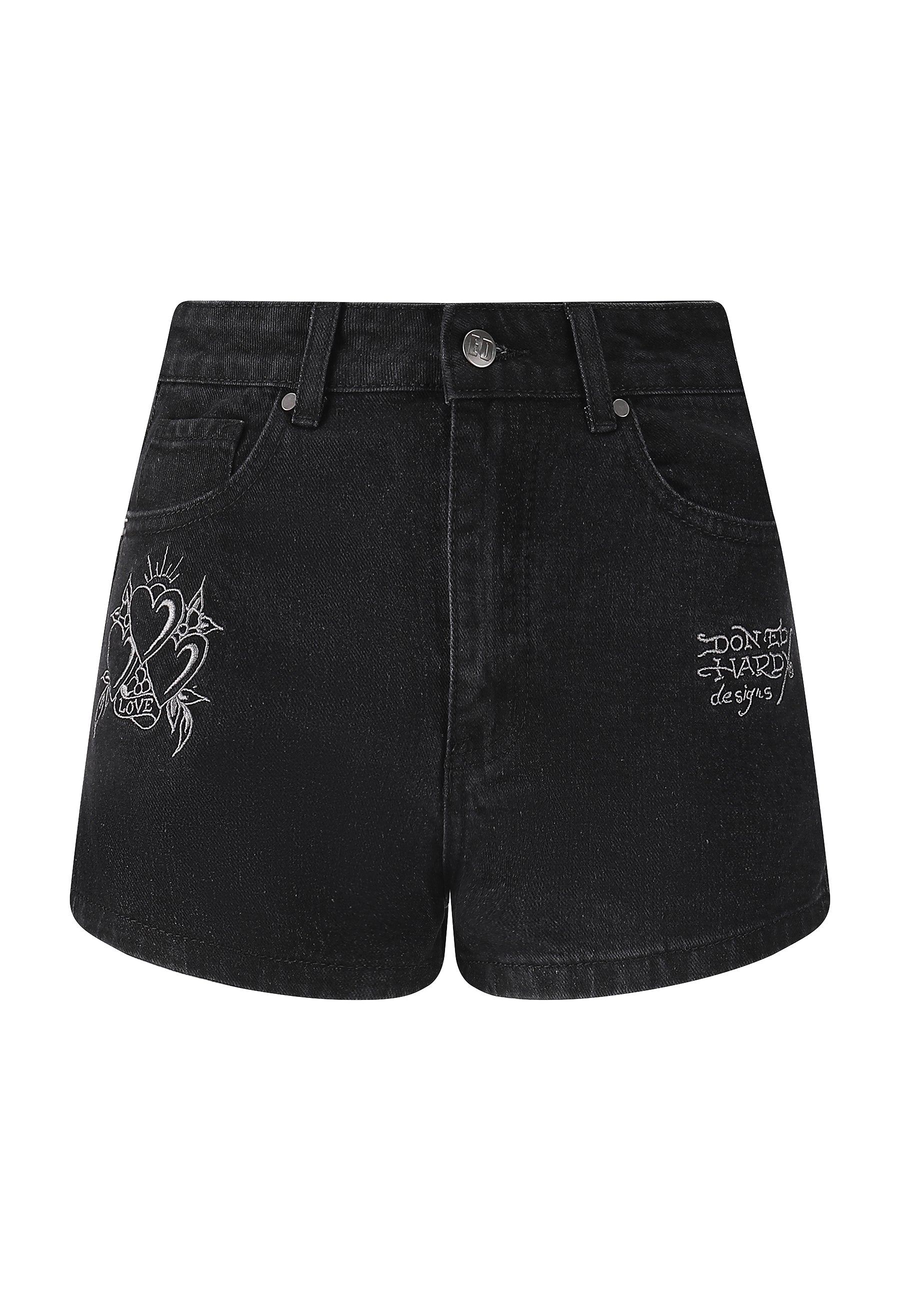 Womens Triple Heart Denim Jorts Shorts - Black
